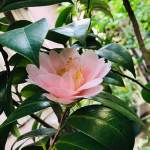 もうすっかり椿は終わったと思ってました。 今日又ひとつ発見‼️ 天から舞い降りてきたのですか⁉️☺️💖 羽衣をヒラヒラなびかせて。。