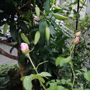 皆さんの百合の花の開花picを眺めながら、うちのコは…と思いながら幾日も😅 まだ蕾が割れてませんが解禁picしちゃいます‼️ 我が家のカサブランカ⚜ 去年お花が終わって葉っぱだけの見切りのカサブランカの鉢苗購入🍀そして地植したものです❣️ 実は初めて百合の花植えました❇️ あ〜 楽しみだなぁ😍 ビエドゥ🌹の蕾との蕾共演でした😊✨