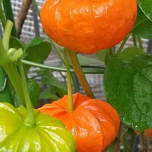 鬼灯 ほおずき 夏に向かってどんどん色づいていきます🧡🧡🧡 ピーマンじゃないですよ💚 父の日 実家の庭 久々に娘と会えて凄く喜んでいた両親 植物の好きな父にgsのアプリをDLしてあげた孝行娘☺️
