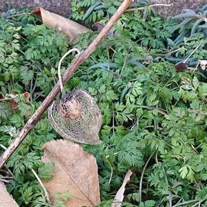 お散歩途中の畑で そのまま放置で透かしほおずきに… 中身も残っていました