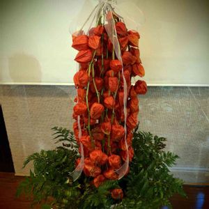 お盆のホオズキを秋らしくドライに挑戦中です^_^