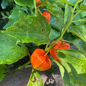 6鉢ほおずきさん植えてます✨😊 なかなか難しいのだけど😆 自然に😊 透かしほおずき✨出来ました😊 台風後なので めっちゃきれいではないですが😆