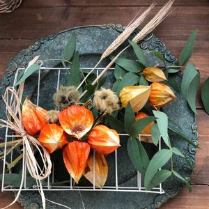 10月は英語でOctober(オクトーバー)、なんとなく丸いイメージが湧くのは私だけでしょうか? 少しだけ色づいたホオズキを花と合わせてみました。 花器: 日本製竹籠の花器(中に陶器の筒が入っています) 花材: カンパニュラ、シジミバナ(枝)、ほおずき