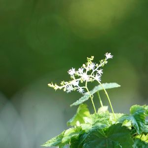 ちいちゃなちいちゃなお花 ❁ツクシカラマツ❁ 5/22蕾時に投稿から、 ほぼ1ヶ月 糸の様なか細い茎 元気に可愛らしく 健気に咲いてます。 キラキラしてるのは、 ワイヤープランツの葉っぱ 朝日でキラキラしてます😊