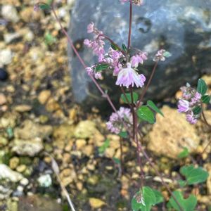 (6月のふる里) ご近所の花友さん庭より… 広〜いお庭の涼しげな場所で出会ったのは "ツクシカラマツ"(筑紫唐松)💖 草丈10cm前後、淡桃紫色の小さなお花が 可憐に咲いていました🥰