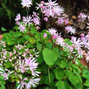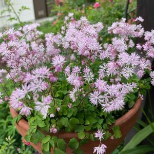 ツクシカラマツソウ。 草丈は10cmに満たないかな〜?!繊細な小さな淡いピンクの花が愛らしい山野草です。 路地植えで育てていましたが環境が合わなかったのか?!だんだんと元気がなくなって😓春に鉢上げしたら元気になりました😊