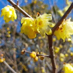 ロウバイ 花もきれいし、いい匂いがします。 緑ヶ丘公園さくらの丘で見つけました。