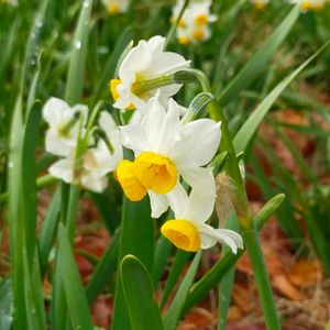 スイセン 雨のしずくがついています。