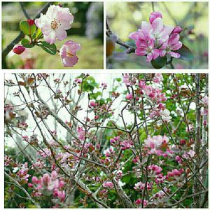 こんにちは~☀ ターシャのお庭にあると言うクラブアップル🍎 10年近く経ち、これまでない花数です🎶 2本ないと実の付きが悪いそうで、これまで 多くて20数個😰 同じくバラ科リンゴ属のハナカイドウが 今年は最後の数輪が残ってて 刷毛でチョンチョンと受粉してみました😃💕 さてさて何個の🍎が実のってくれるのか…σ(^_^;)? 左上↖ハナカイドウ 右上↗クラブアップル 明日から又荒れ模様とか… 急に風が出てきました🍃 良い週末を~💓💓