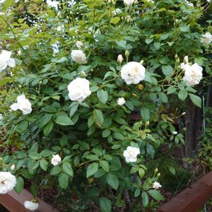 犬の散歩の途中で🌹 今年植えた白いつるバラ、来年こんなふうに咲くかな〜💦