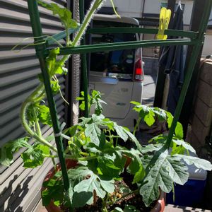 こちらは、初挑戦のスイカ🍉 うーん、親ヅル伸ばしすぎたなぁ 日照時間が欲しいので 場所を変更