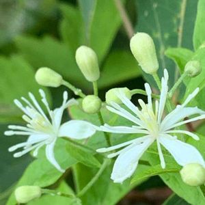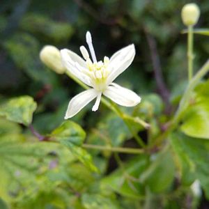 ボタンヅル センニンソウとの違い🌼蕾の先が丸い 🌼雄しべが長い。(花びらのように見える4枚の萼片と同じか長い。) 🌼葉に鋸歯がある。(ボタンの葉に似ているのでこの名) など😃 東京都 三頭山 8/13