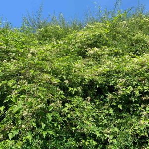 地元で発見✨ こちらは、ほぼ二種のグリーンで葉っぱがよくわかる茂み しかし眩しさで花がわかりにくい💦