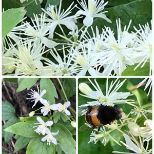 ボタンヅル キンポウゲ科 分布 本州~沖縄に分布しています。 木や薮に絡まって自生するつる性植物です。 葉がボタンの葉と似ているからボタンヅル…。☘️🌿 花びらが落ちかかっても、少なくなった蜜を求めて飛び渡るオオハナアブ。🐝🐝 いじらしい!(★‿★)