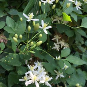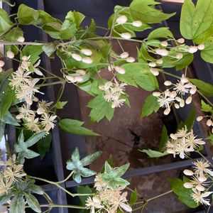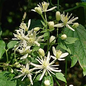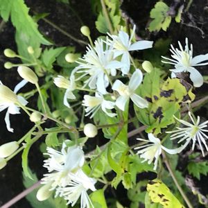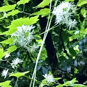 鳥栖市御手洗の滝⛰️ の駐車場の木に絡み付いて咲いていたボタンヅル(牡丹蔓)