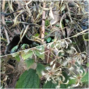 ボタンヅルの花後 下 10/7 投稿時の状態。 上 12/6の状態。種の部分が黒くなってきています。