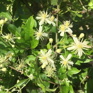 ボタンヅル🌼🌿 センニンソウではなく、ボタンヅルと教えて頂きました。 ありがとうございました。 あらゆる場所で見られ、色々な木に絡まって咲いています。