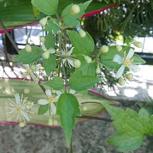 野山で雑草のように生えるボタンヅルだけど、自宅の庭で咲くと嬉しい🎉 花はセンニンソウに似ていますが、葉の形がボタンの葉に似た蔓植物なのでボタンヅルです👍