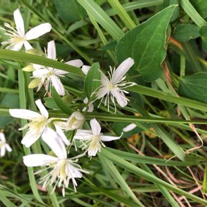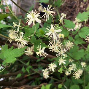 牡丹蔓 葉がボタンの葉に似ていることからの名前☺️ 花はセンニンソウに似ていますが少し小さめ。小葉に鋸歯があるのがセンニンソウとの見分けポイント🙂