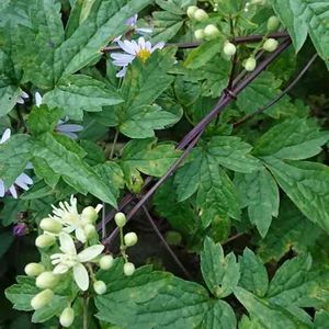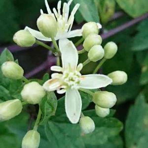 皆さまの投稿で見ていたセンニンソウかと思いましたが、葉っぱの形からボタンヅルかと思われます いずれにしろ初めて見ました って、やっぱり今まで気づかなかっただけですが💦 真っ白が綺麗で華やかなお花でした