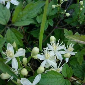 棚田でみつけました。 センニンソウかと思いましたが、 葉の形状が違っていて 検索したら ボタンヅルと解りました。