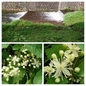 暑い日には川で涼みたいですね😉 母沢という沢と川原の土手に咲くボタンヅルの花🌿 今年はたくさんの蕾がつき 次から次へと咲き始めてました(*^▽^)/★*☆♪ 花火のようで綺麗です🎇 わんことお散歩🐾より♪