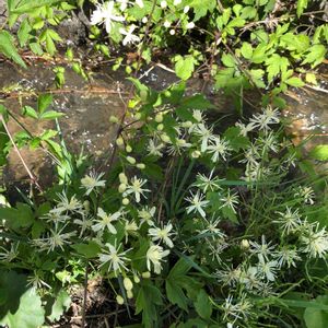 野に似合わぬ?美しさ✨✨ どこからやってきたんだか、ホントに美しいです💕 センニンソウとよく似ているらしいですが、葉っぱの特徴からこちらはボタンヅルと思われます😊
