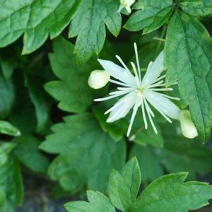 🧚♀️🌸今朝の一枚✨💖 ❥♡ボタンヅル♡❥ 先日upしたセンニンソウとよく似ていますが…よく見ると、蕾みの先が丸くセンニンソウはとがっています。花びらのかたちも少し違いますが、パッと見分かりにくいですね😌 🧚♀️🌸・*:..。o○☼*゚・*:..。o○☼*゚・*:..。o○☼*゚💕💠