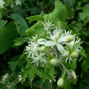 原野に戻りつつある畑と生垣の境目に生えてます。 崖っぷちなので、近づけません(>_<) ラスタニャンさんが教えてくださいましたあ❤️ ボタンヅルです。