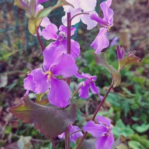 おはようございます^o^😊 💜🌸オオアラセイトウ(ムラサキハナナ)🌸💜(๑・̑◡・̑๑) アブラナ科 オオアラセイトウ属 「オオアラセイトウ」とは、ストックの和名「アラセイトウ」からきています。 一重咲きのストックに花姿が似ているということからつけられた和名です。 もう一つの別名のムラサキハナナは「紫色の菜の花」の意であるが、 単に菜の花に形状が似ているというだけではなく、実用面でも野菜としての利用や種から油を採取する点などでもアブラナとの共通点があるそうです 宝登山神社⛩参道のカフェにて