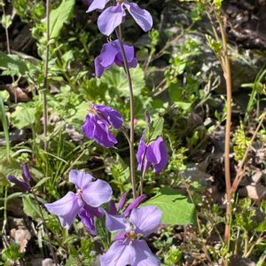 こんばんは🌆^o^ 🌿💜オオアラセイトウ💜🌿(๑・̑◡・̑๑) スミレ色💜 とても可愛い💕 アブラナ科オオアラセイトウ属 「ムラサキハナナ(紫花菜)」「ハナダイコン(花大根)」とも呼ばれていますが、優れた軍師である「諸葛亮孔明」が食料としてこの花を広めたという伝説から、このほかにも「諸葛菜(ショカツサイ)」という名前でも呼ばれています。 2022.4.9 高尾山