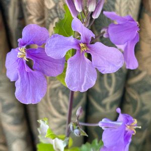 昨年のこぼれ種からのムラサキハナナのお花が咲き始めました💜 雪の日にサンルームに入れてなかば忘れかけていたのですが、茎を伸ばして健気に咲いているのを見つけて嬉しくなりました😊