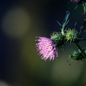 薊 なぜにそこまでトゲトゲしているのか、花まで直線的だし〜 大好きなアザミ キク科アザミ属…… 13世紀、ノルウェー軍がスコットランドを夜襲、足音を立てないように裸足で進軍して、アザミを踏んだ兵士の声に夜襲に気付き、スコットランドは勝利した、と言われアザミはスコットランドの国花です。