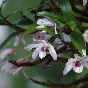 セッコク 日本の中部以南の岩や樹木に着生する 小型の着生蘭。デンドロビウムの仲間なのですね。 お庭から飛び出したくさんの花を付けていたのを撮らせて頂きました。