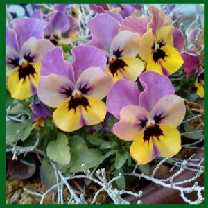 おはようございます☀️ ビオラの寄せ植え🌸 カロケファルス、チェッカーベリー、ロータスブリムスト一ンを寄せています❤️💛💚 今日も素敵な一日をお過ごし下さい😊