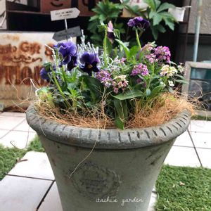 こんにちは☀️ 定植して1ヶ月程経った寄せ植え💜 美しい花色です💕 今日も素敵な一日をお過ごし下さい😊
