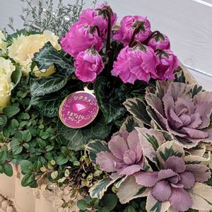 おはようございます☀ 新年、初めて作った寄せ植え🌸 プリムラジュリアンブルーエッジ、ビオラアルスノーヴァ、葉牡丹、カロケファルス、ヘデラを寄せています💜 やっぱり寄せ植えは楽しいです✨ 今日も素敵な一日をお過ごしください😊