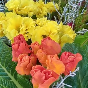 ジュリアン八重 ビタミンカラー 寄せ植えのを昨日 撮りました。 おはようございますm(_ _)m 今日は☁マークです。