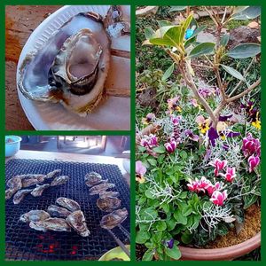 番外編 牡蠣🦪焼き 昨日は天気☀良くて友達とドライブがてら 🦪牡蠣食べに行ってきました。 いつも行く所が定休日で通り道に寄ったら 身が小さかったです。 寄せ植え ☃雪かぶりに土砂降りに あったけど 今こんな感じです。 おはようございますm(_ _)m 今日は☀☁マークです。