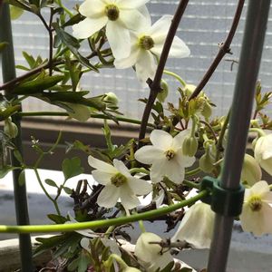 うちのも咲きましたよ💕 クレマチス カートマニージョ 葉っぱちょっとスカスカになっちゃったし、花も去年より小さくなっちゃった💦