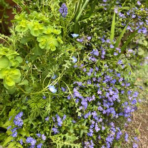 雨が降って来ました☔️見納めになりそうなベロニカオックスフォードブルー💙 三年程前に寄せ植えにしていた一株を地植えにしました。 花壇を乗り越えて増えています。