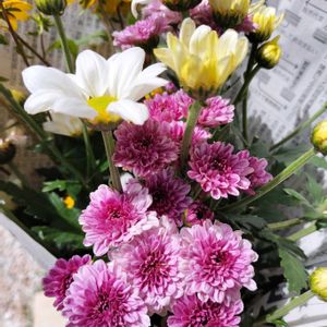 お墓参りの花束を作りました。 買ってきた花材と、 家にあったもののMIXです。
