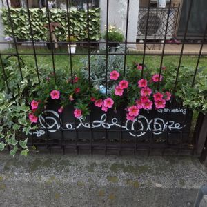こんにちは☀️ 今日2枚目になります🙇♀️ 🌸💙門前のお花達❤️🌼 明日から雨☔ですネ💦 ももいろハート、切り戻し考え中😅