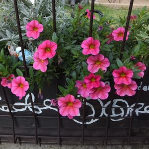 PWピンク三姉妹 1ヶ月と14日 かなりゆっくり成長してます🥱 スーパーチュニアがスーパーベルに差をつけてますね。。 これだけプラ鉢なのが関係あるのかは不明です🌸