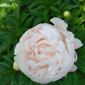 ガーデニングにはまった当時に カタログを見て迎えた芍薬❣️ 名前は滝の粧(たきのよそおい)と言う淡い淡いピンクの芍薬です💕 一つ目がやっと開きました🎶