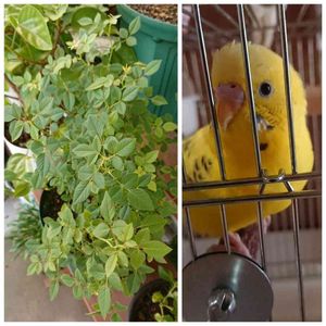 新芽が生えてきてるデュランタ と その鉢に出てきてるカモミール デュランタはこの鉢だけが なぜか新緑になってます それと、、、 きょうはちょっと元気がいい鳥さんも一緒に🤗