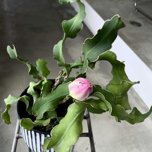 2025.7.28 うねうね天然パーマの肉厚な葉っぱにピンク🩷のぽってりした実が可愛いミニドラゴンフルーツ 🟢さんのを見て、ずっと気になっていたところ、立ち寄った園芸店に山ほどぶら下がっていたので迷わず🛒 しかもワンコイン🪙😲 コーヒー一杯と同じで長く楽しめる🪴ってコスパ良しですよね…←いつも植友と言い合うセリフ🤭