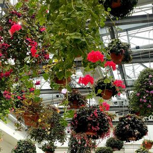 読売ランドHANA🌸BIYORI⑤ 建物の中に入ると、日差しが入る明るい天井から色とりどりのフラワーシャンデリアが出迎えてくれました。