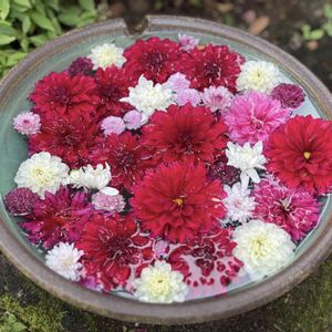 今日のお花さん𓂃 ✿𓈒𓏸 昨日の行きました HANA BIYORI にある花手水の ダリアさんキレイ (ლ*˘︶˘*).。.:*♡ •*¨*•.¸¸☆*・゚