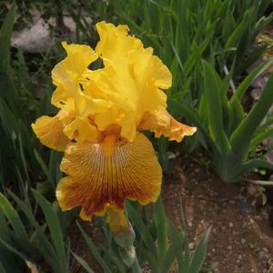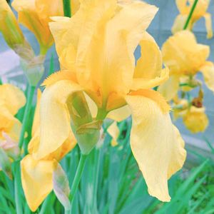 散歩中 こちらも元気が出るビタミンカラーの 「花菖蒲」💛さん•*¨*•.¸¸☆*・゚